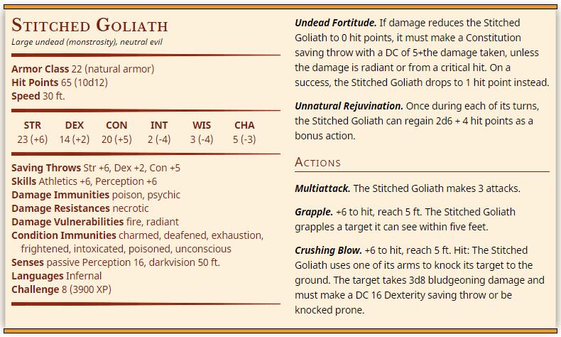 We Have got 13 picture about Goliath 5E Stat Block images, photos, pictures, backgrounds, and more. In such page, we additionally have number of images out there. Such as png, jpg, animated gifs, pic art, symbol, blackandwhite, images, etc. If you're searching for Goliath 5E Stat Block topic, you have visit the ideal site. Our page always gives you hints for seeing the highest quality pics content, please kindly hunt and locate more enlightening articles and picture that fit your interests.